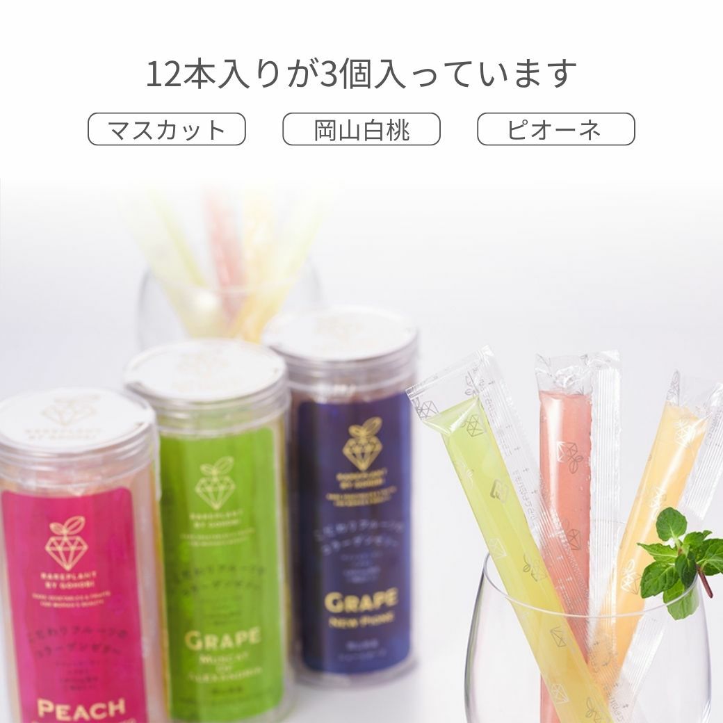 他の画像を見る 岡山の3大フルーツを存分に楽しめる、GOHOBIの定番ギフト フルーツコラーゲンゼリー12本3個セット(桃・マスカット・ピオーネ)|RAREPLANT 販売価格 ¥ 3,070 税込 詳細を見る お気に入りに登録する