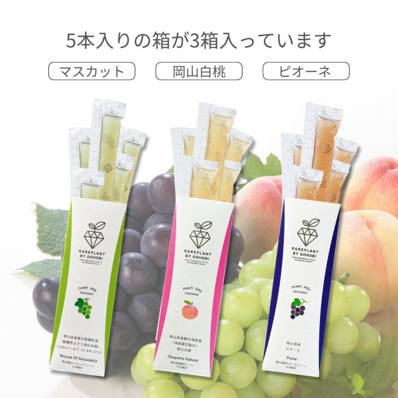 フルーツコラーゲンゼリー5本3個セット(桃・マスカット・ピオーネ)|RAREPLANT
